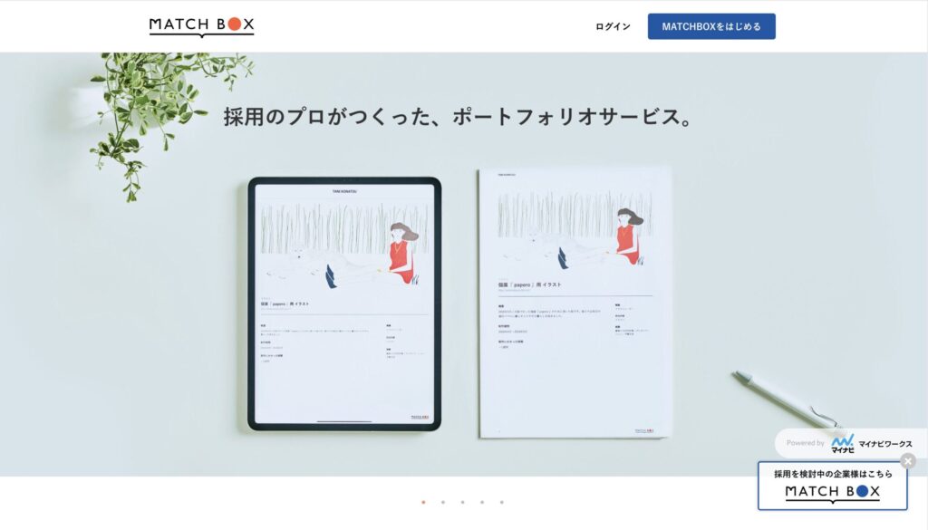 マイナビクリエイターが提供する「MATCHBOX(マッチボックス)」は、ポートフォリオを簡単に作成・公開できるツールです。