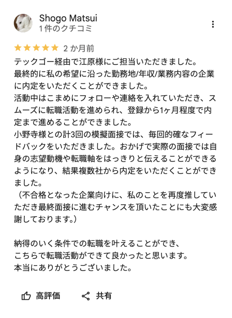 実は、このサービスはすでに1,000人以上のエンジニアが利用していて、Google評価は4.8(600件以上の口コミ)という高評価を獲得しています。